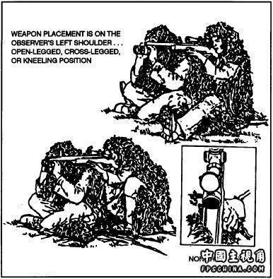 如果狙击手是左手射击,观瞄准手的位置在他的左后方。