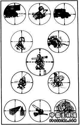 4.射程估算——通常主射手在识别目标时也会自觉地估算目标距离,当他读出估算的距离后,观瞄手就开始计算射程并告诉射手是否需要修正。